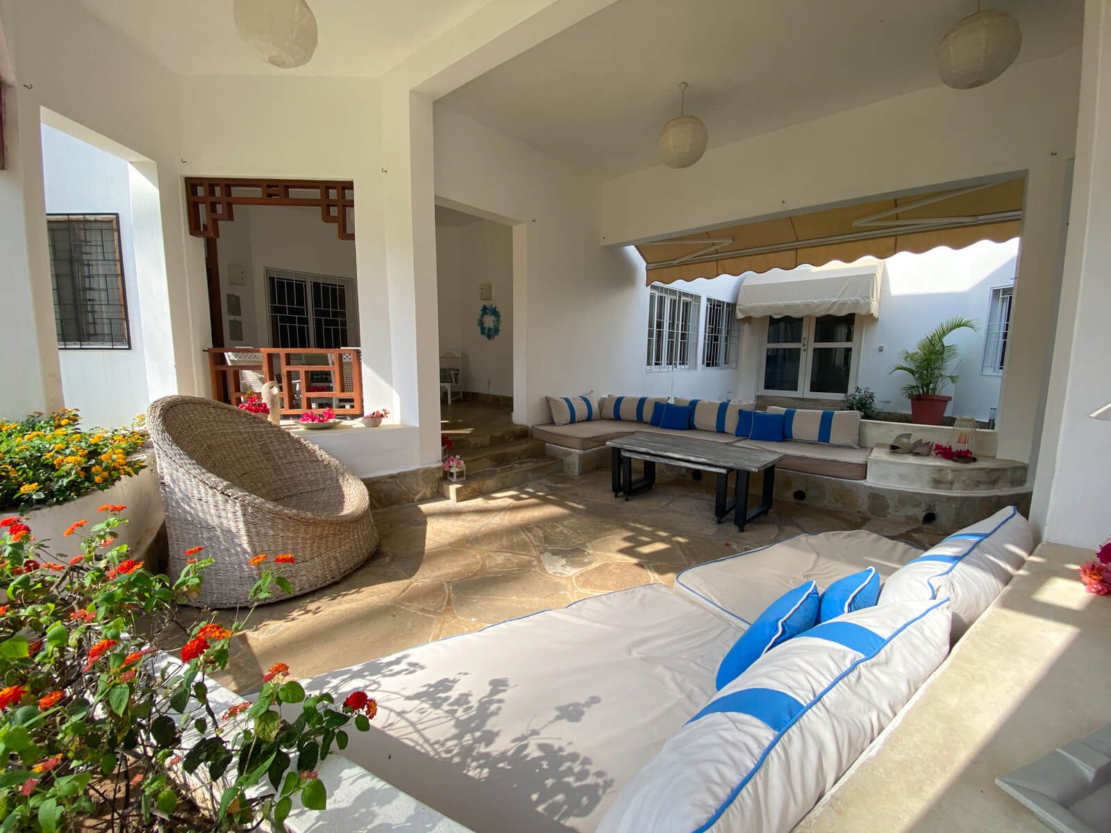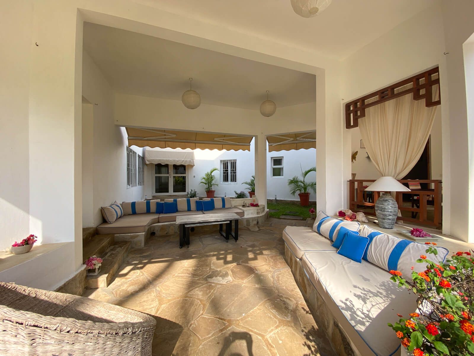 This is a four - bedroom house designed with a modern and African style. It is set in Blu Key Residence on the Silversand beach,